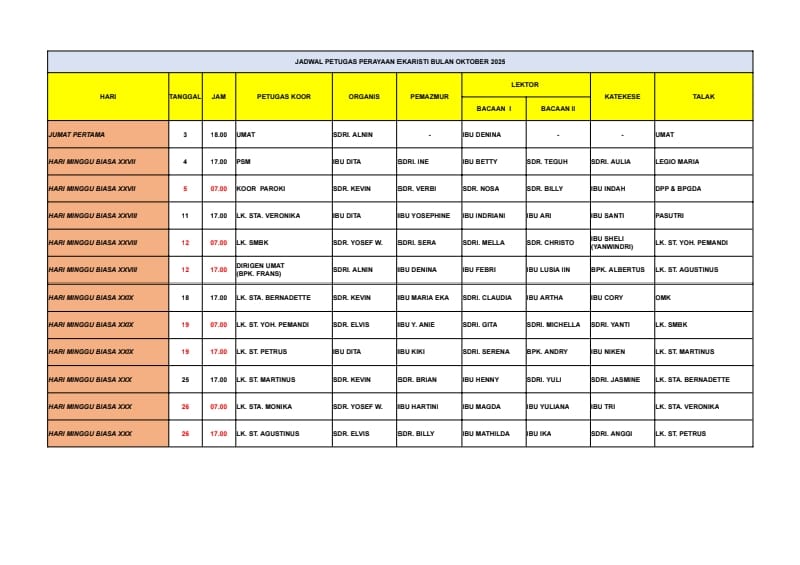 - Misa Jumat Pertama 18.00 WIB